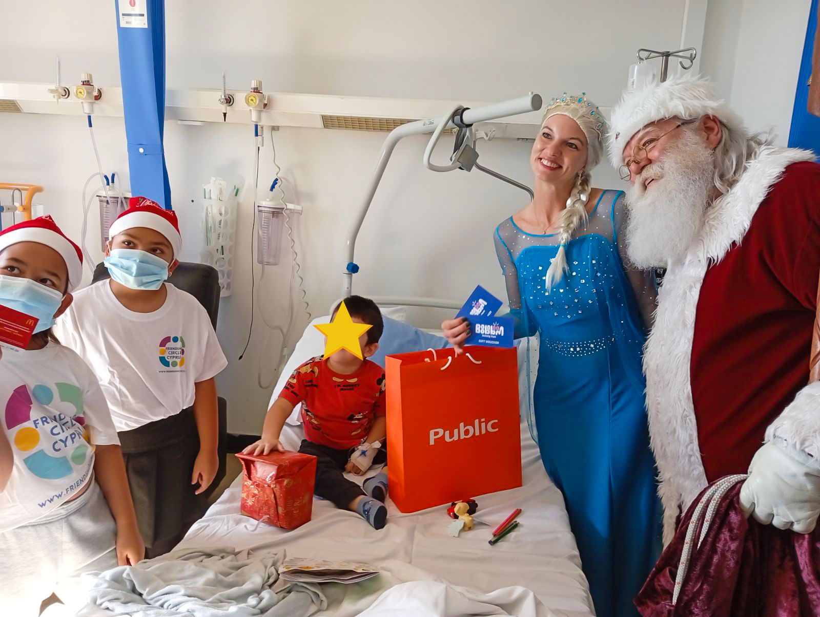 Τα παιδιά στο Γενικό Νοσοκομείο Λάρνακας, υποδέχτηκαν τη γιορτινή έκπληξη με χαμόγελα λαμβάνοντας τα δικά τους γιορτινά δωράκια σε μια μέρα που πρόσφερε ζεστασιά και αισιοδοξία σε όλους.