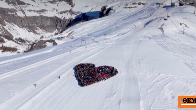 Περίπου 1.000 σκιέρ χάραξαν την Κυριακή μια τεράστια καρδιά στο χιόνι, σε πίστα του παγκοσμίου τουρνουά στο Κραν Μοντανά, αποτίοντας φόρο τιμής στα θύματα της φονικής πυρκαγιάς που ξέσπασε την περασμένη εβδομάδα στο ελβετικό θέρετρο.