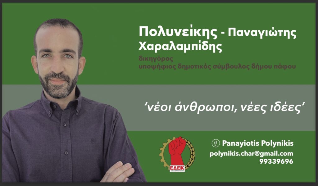 Σε μία κρίσιμη στιγμή για την τοπική αυτοδιοίκηση ενόψει των μεταρρυθμίσεων, ανακοινώνω την υποψηφιότητα μου για τη θέση του Δημοτικού Συμβούλου στο Δήμο Πάφου, εστιάζοντας στις #ΝέεςΙδέες και τη δύναμη των #ΝέωνΑνθρώπων.