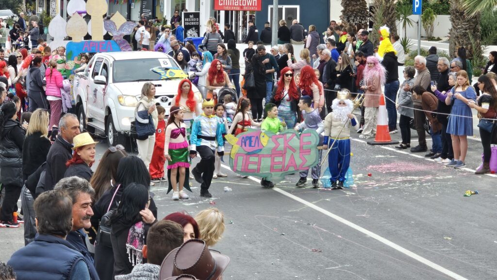 Πλήθος κόσμου συγκεντρώθηκε στην Πέγεια για την διεξαγωγή της μεγάλης καρναβαλίστικης παρέλασης που διεξήχθη το απόγευμα της Κυριακής.